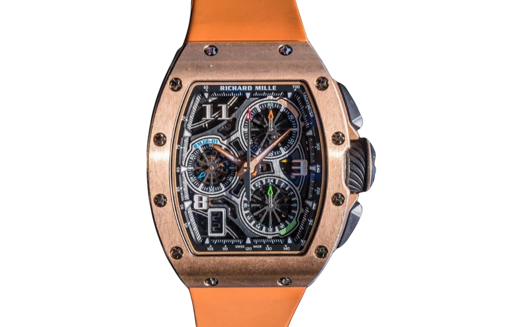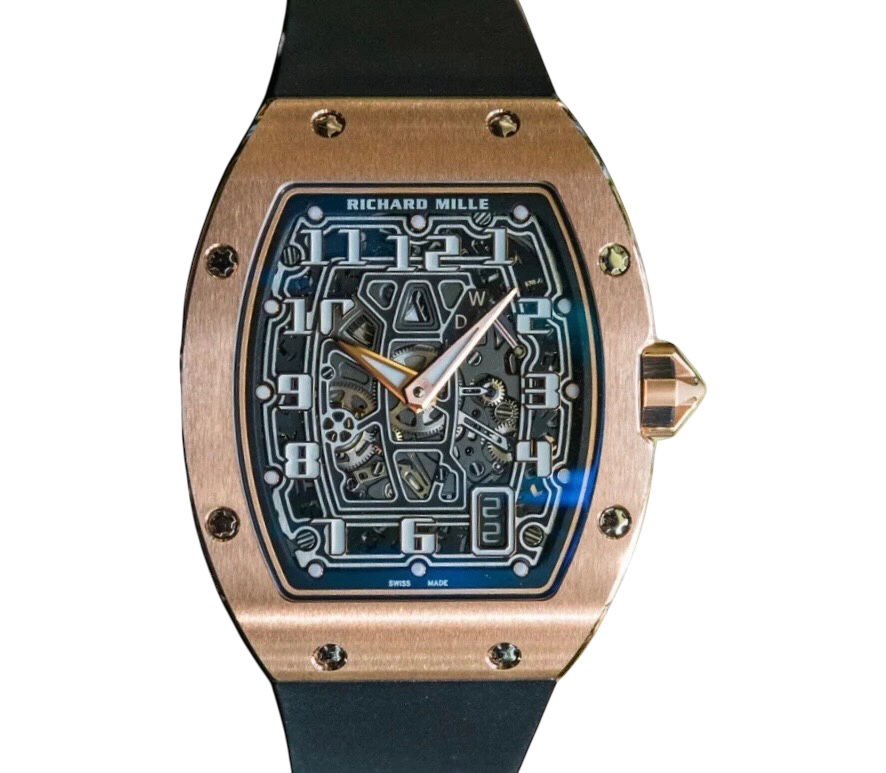Richard Mille Rose Gold 48 mm Esfera transparente Correa de caucho en oro rosa de 18 k RM029