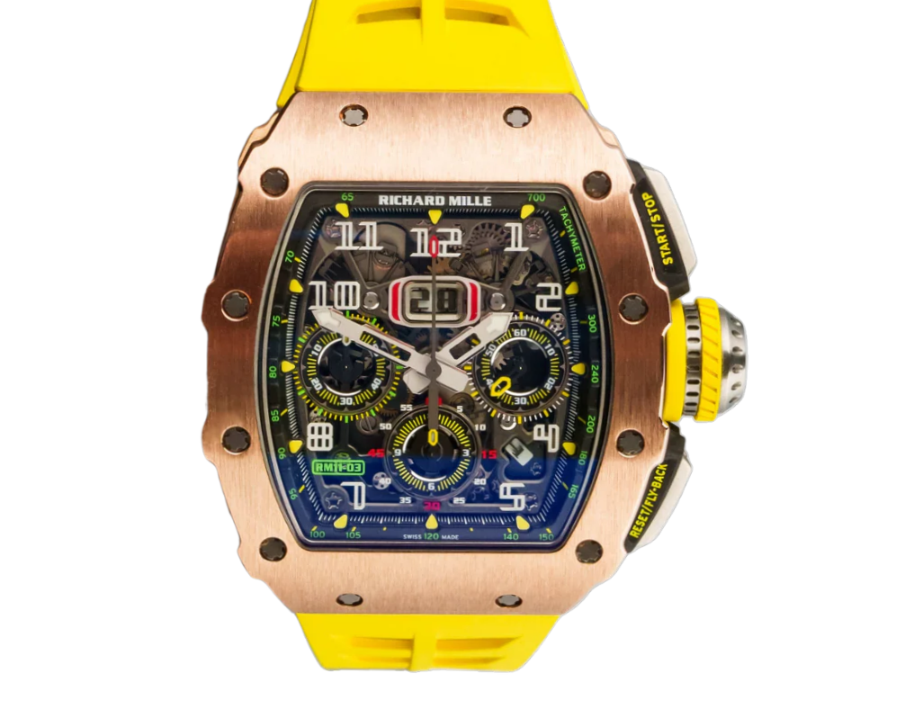 Richard Mille Oro rosa 50 mm x 44 mm Esfera transparente Correa de caucho en oro rosa de 18 k RM 11-03