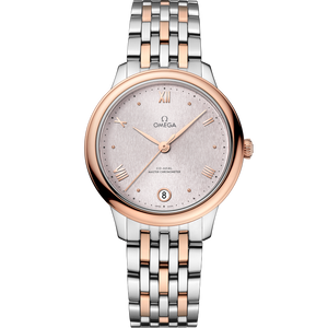 Omega De Ville Prestige 34 mm Esfera plateada Acero inoxidable y brazalete Sedna™ oro rosa de 18 k 434.20.34.20.02.003