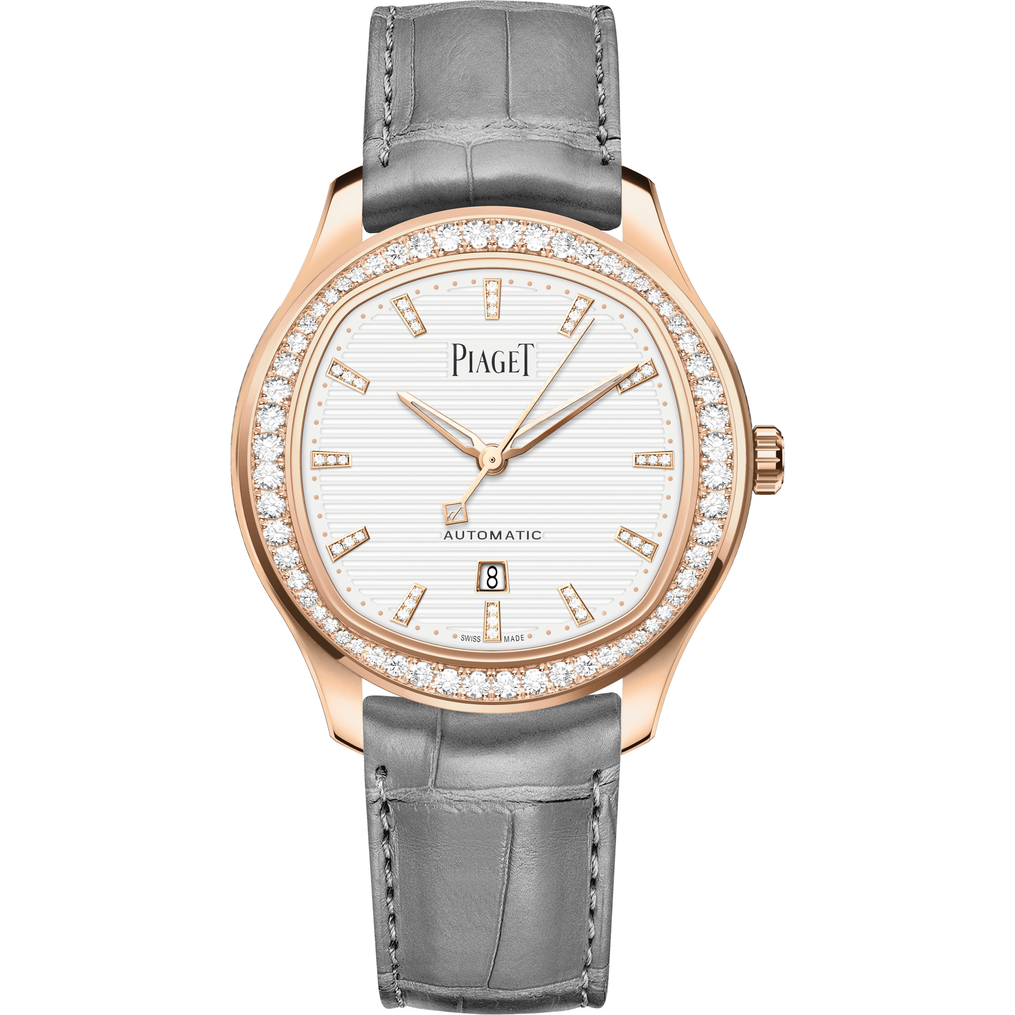 Reloj Piaget Piaget Polo Date de 36 mm, esfera blanca con diamantes, correa de piel de aligátor en oro rosa de 18 quilates G0A46023