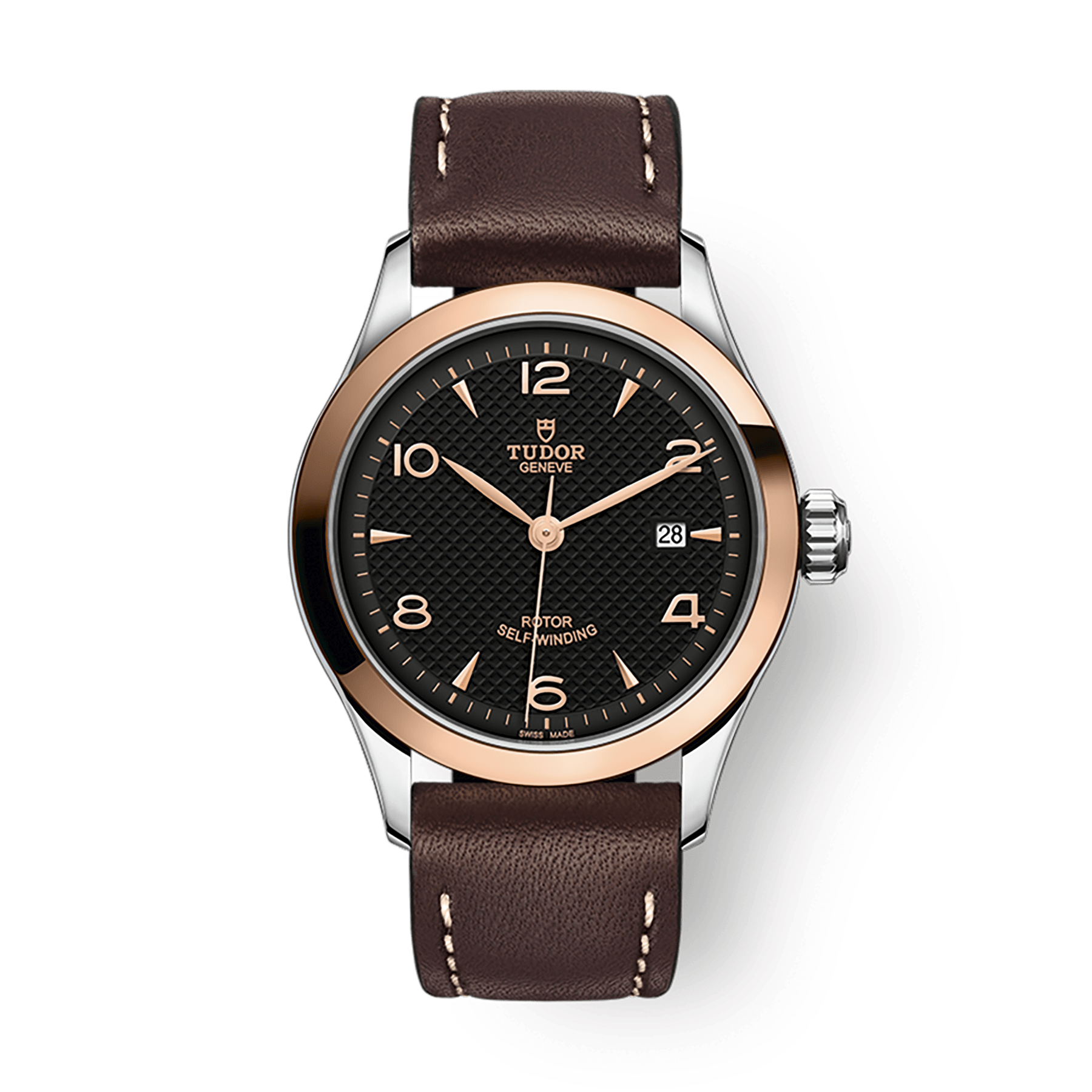 Tudor 1926 28 mm Esfera negra Correa de cuero de acero inoxidable M91351-0007
