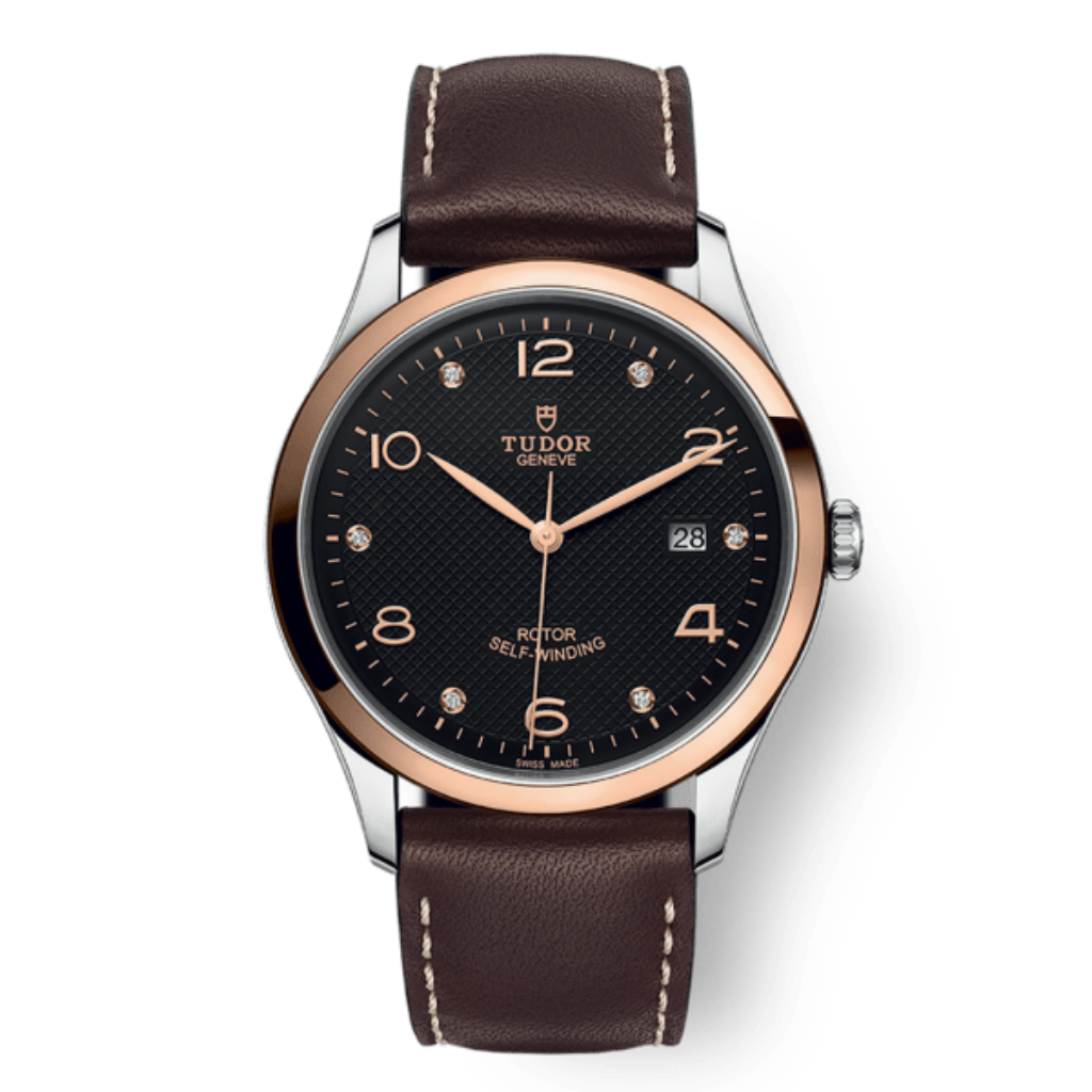 Tudor 1926 41 mm Esfera negra con diamantes Correa de cuero de acero inoxidable M91651-0008
