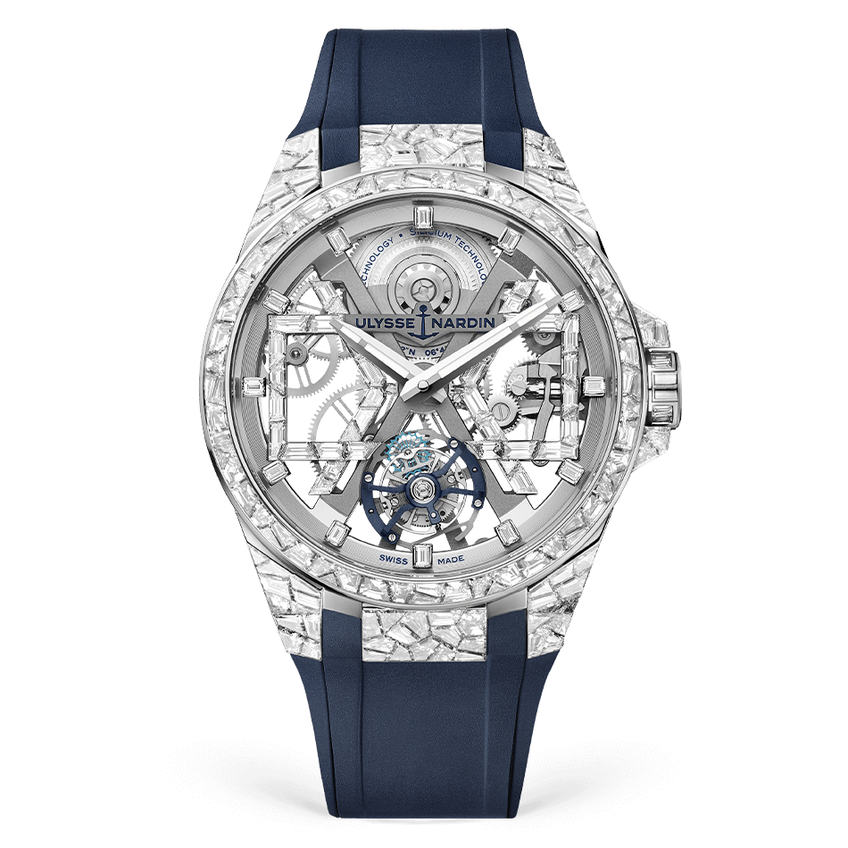 Discover the exceptional craftsmanship of the Ulisse Nardin Explosión - a distinguished timepiece curated by WATCHXNYC. Embodying generations of horological mastery, this Ulysse Nardin Blast Tourbillon 45 mm Esfera plateada con diamantes Correa de caucho en oro blanco 1720-400BLE-3A/01 demonstrates why Ulisse Nardin stands among the world's most respected watchmakers.