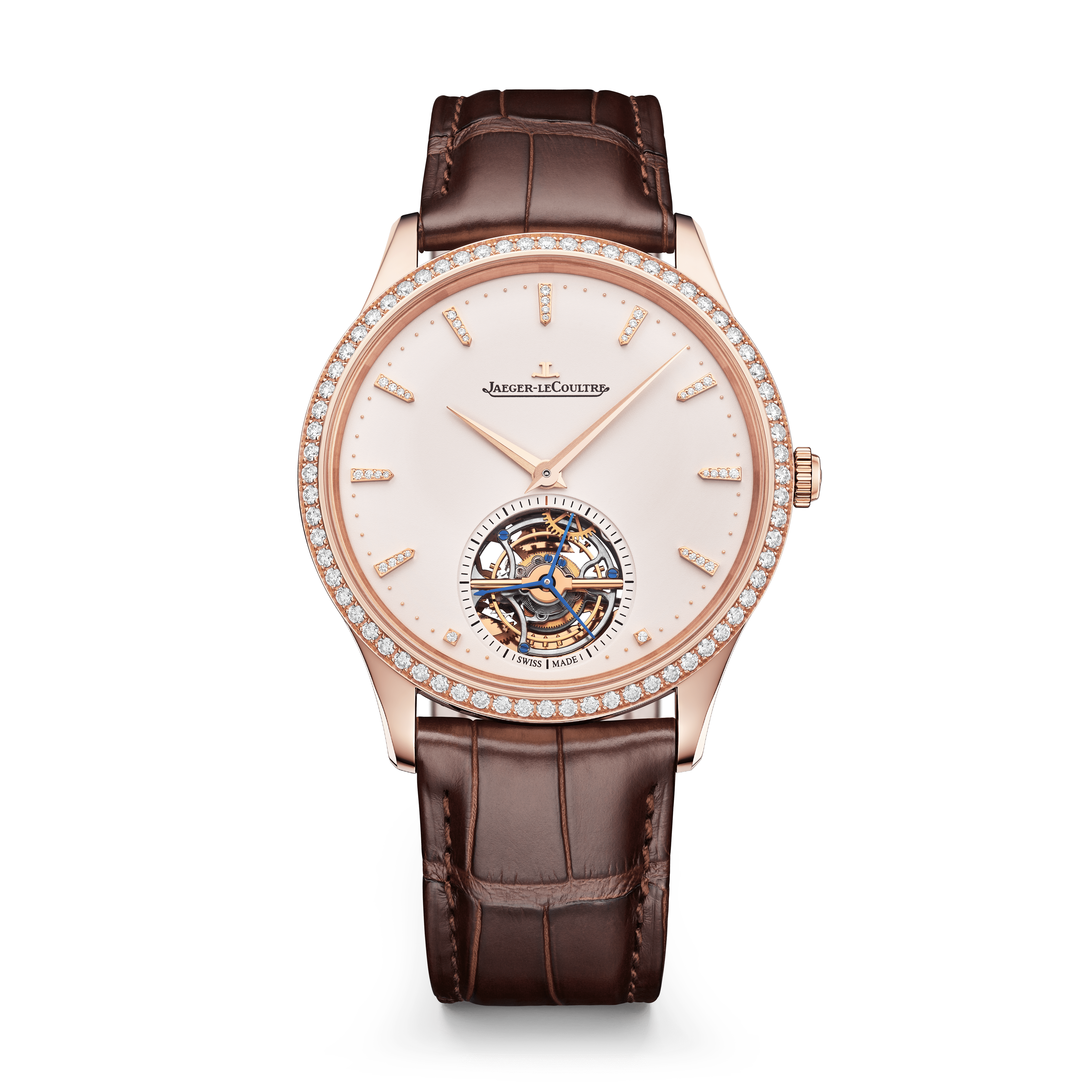Jaeger-LeCoultre Master Ultra Thin Tourbillon 40 mm Beige Dial with Diamonds Pink Gold Leather Strap Q1682401