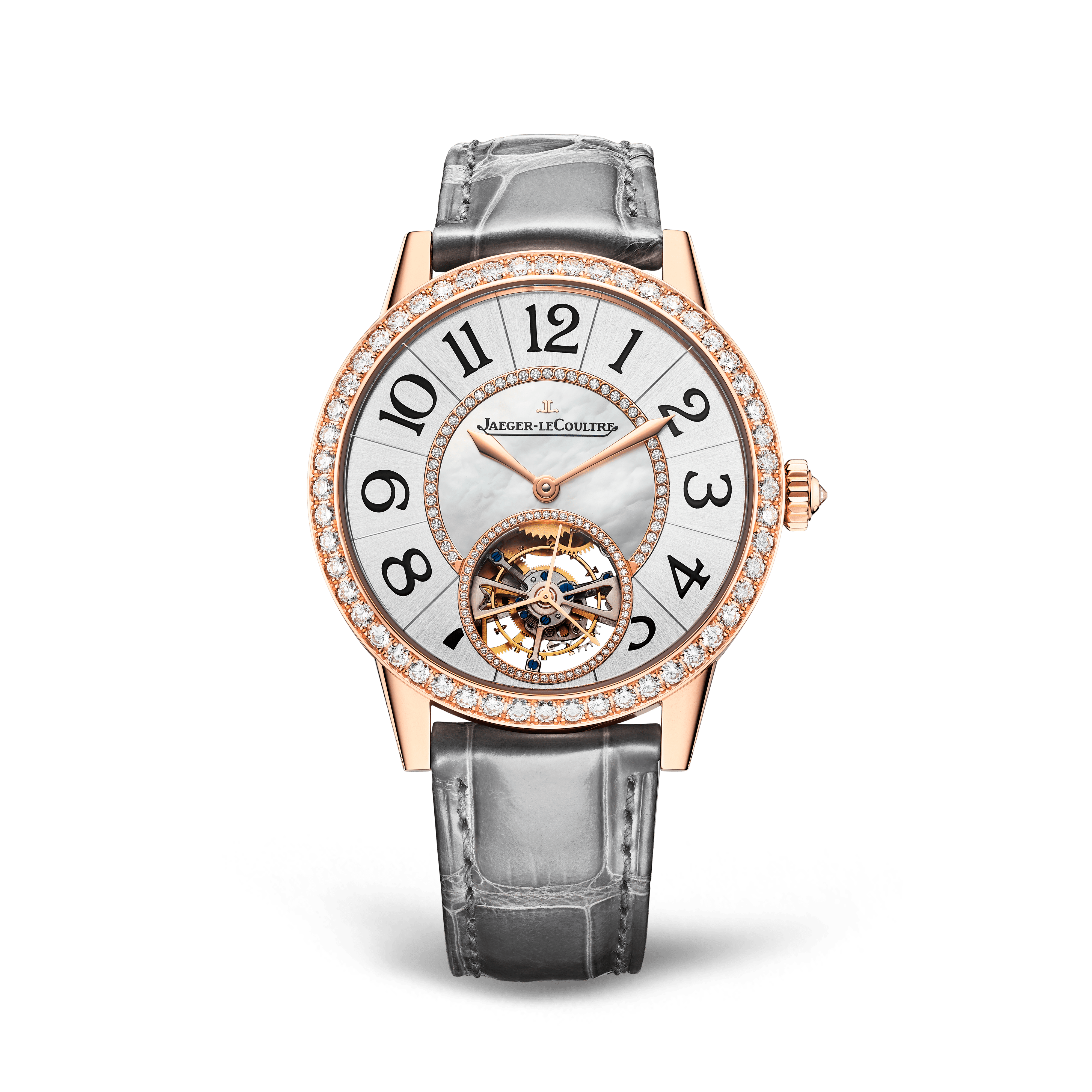 Jaeger-LeCoultre Rendez-Vous Jewellery Tourbillon 39 mm Grey Dial with Diamonds Pink Gold Leather Strap Q3412410