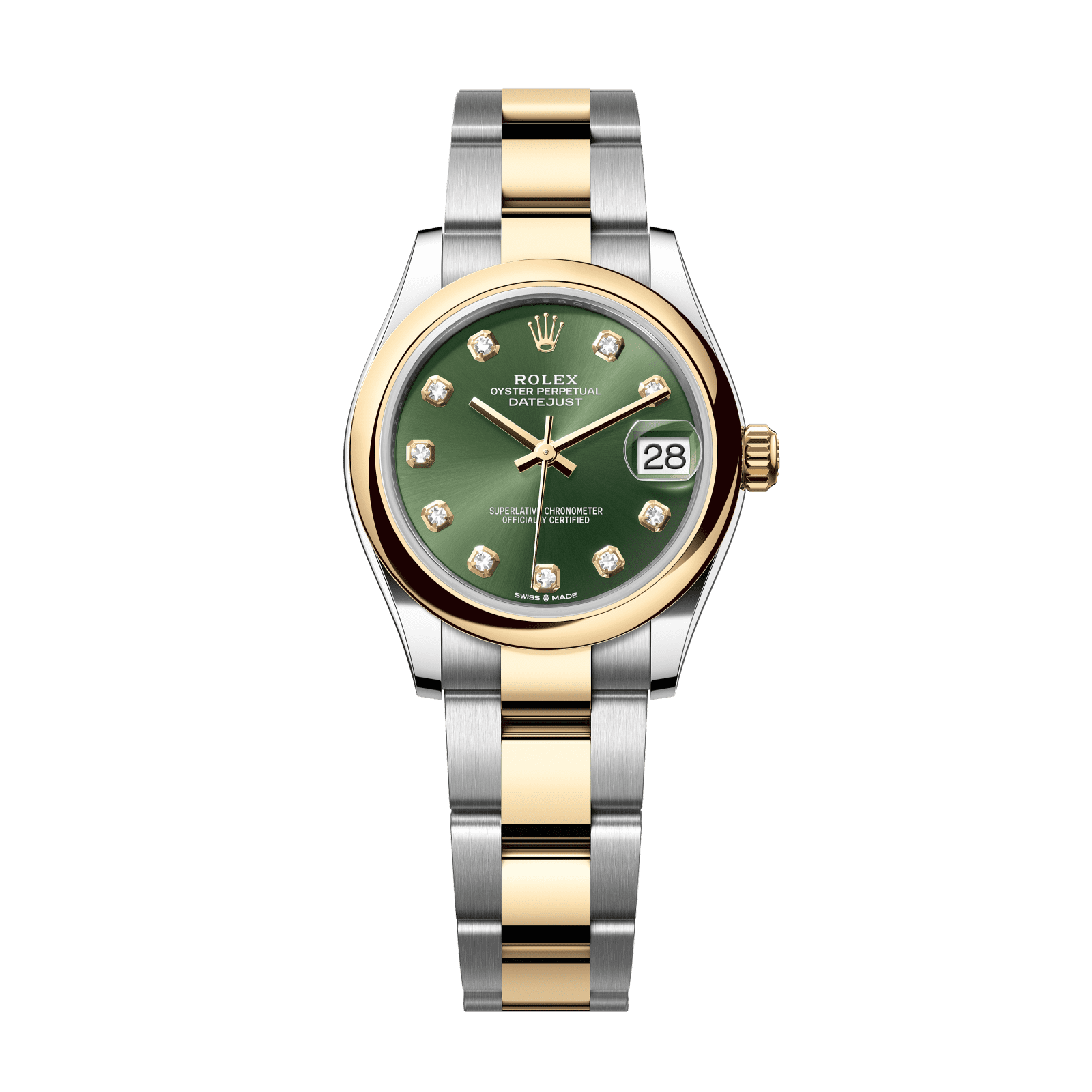 Rolex Datejust 31 mm Olive Green Set With Diamonds Dial Oystersteel and 18k Yellow Gold Oyster Bracelet 278243-0029