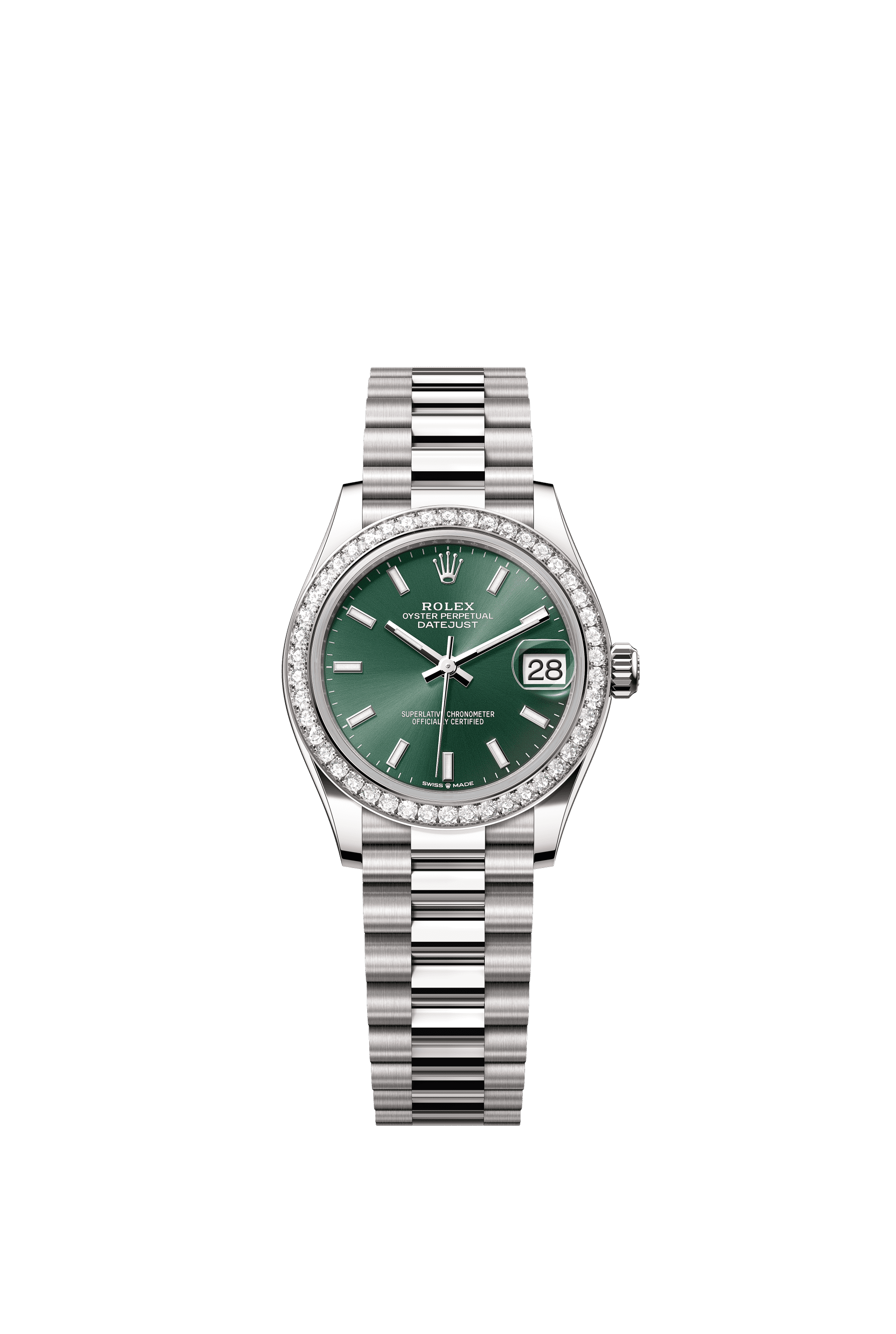 Distinguished by its White Gold case and Mint Green dial, reference 278289RBR exemplifies precision engineering protected by scratch-resistant sapphire crystal. This sophisticated timepiece harmoniously balances aesthetic refinement with mechanical excellence.