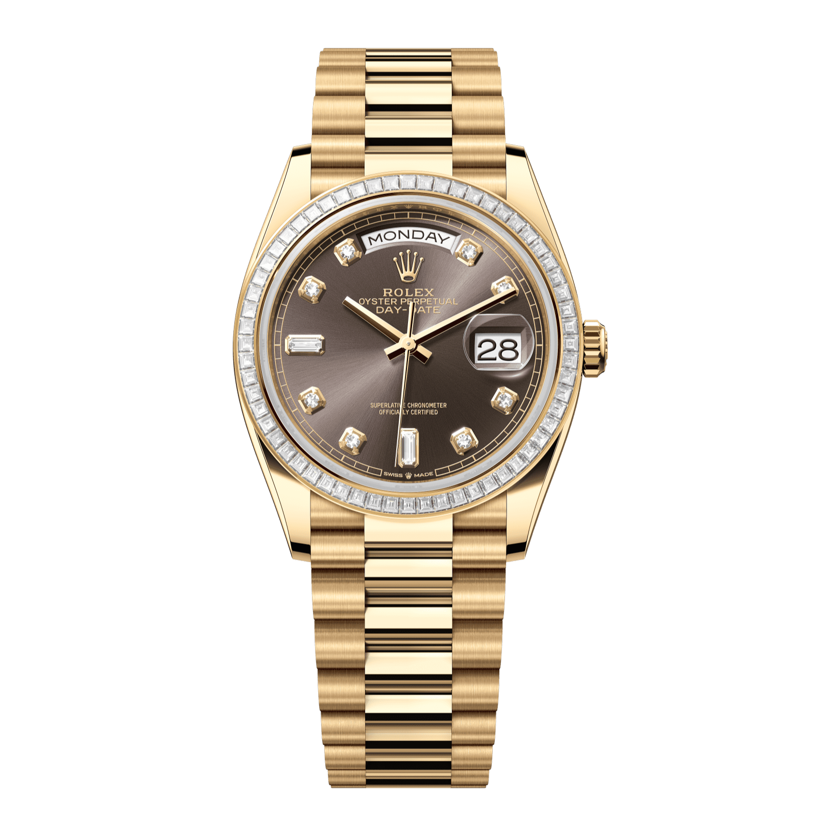 Rolex Day-Date 36 36 mm Dark Grey Set With Diamonds Dial 18k Yellow Gold President Bracelet 128398tbr-0006