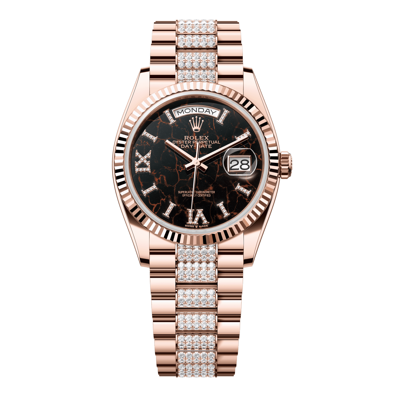 Rolex Day-Date 36 36 mm Eisenkiesel Set With Diamonds Dial 18 kt Everose Gold President Bracelet 128235-0042
