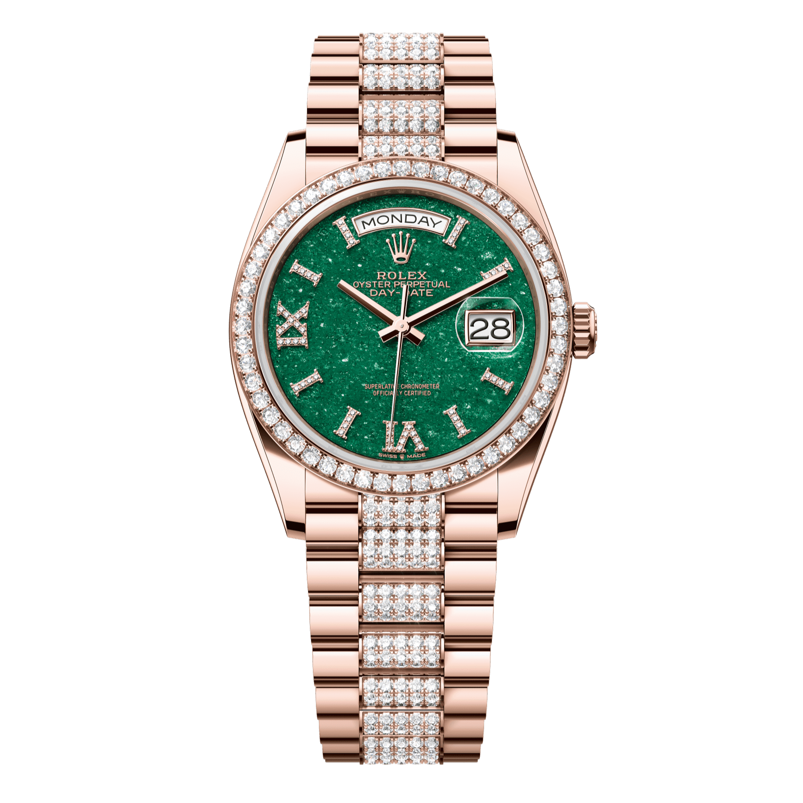 Rolex Day-Date 36 36 mm Green Aventurine Set With Diamonds Dial 18 kt Everose Gold President Bracelet 128345rbr-0069
