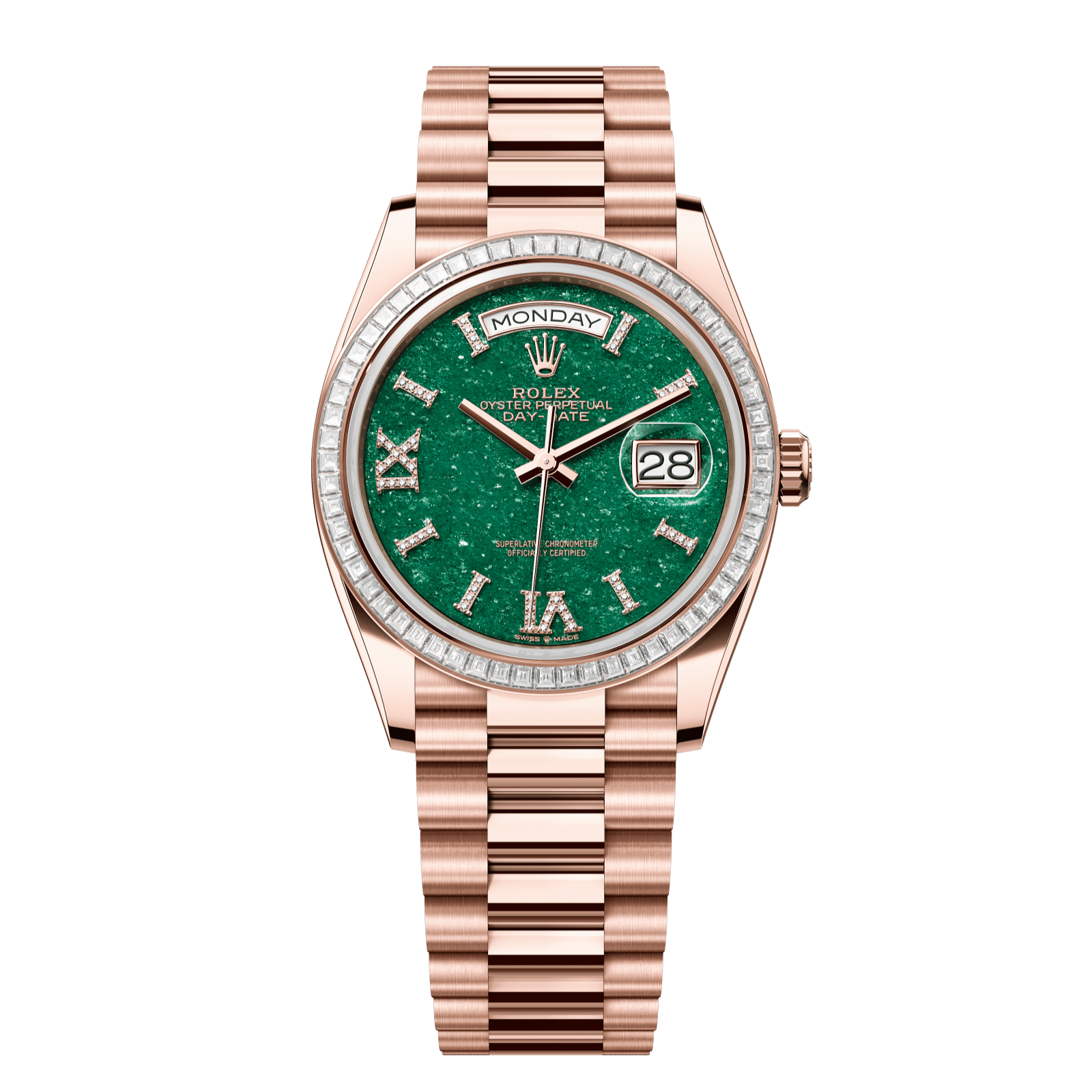 Rolex Day-Date 36 36 mm Green Aventurine Set With Diamonds Dial 18 kt Everose Gold President Bracelet 128395tbr-0020