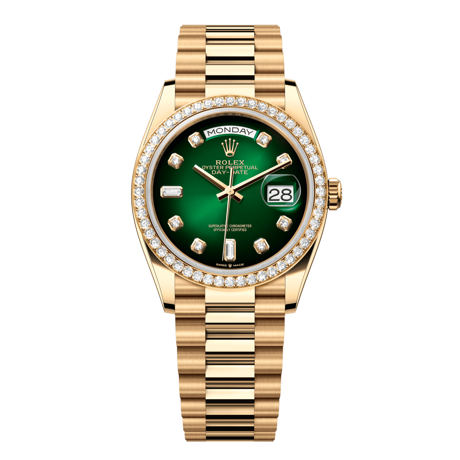 Rolex Day-Date 36 36 mm Green Ombre? Set With Diamonds Dial 18k Yellow Gold President Bracelet 128348rbr-0035