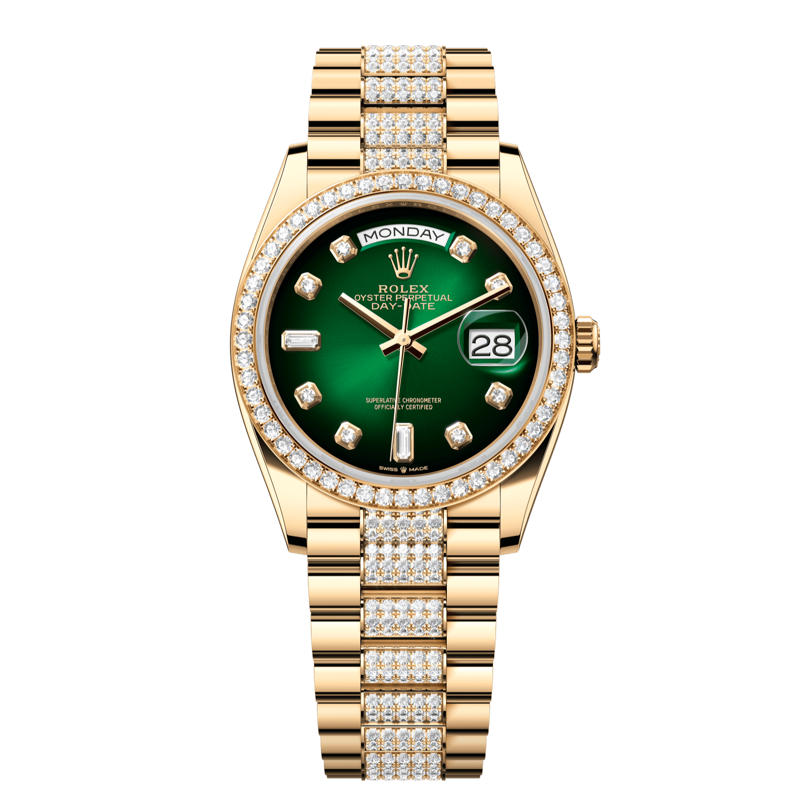 Rolex Day-Date 36 36 mm Green Ombre? Set With Diamonds Dial 18k Yellow Gold President Bracelet 128348rbr-0036
