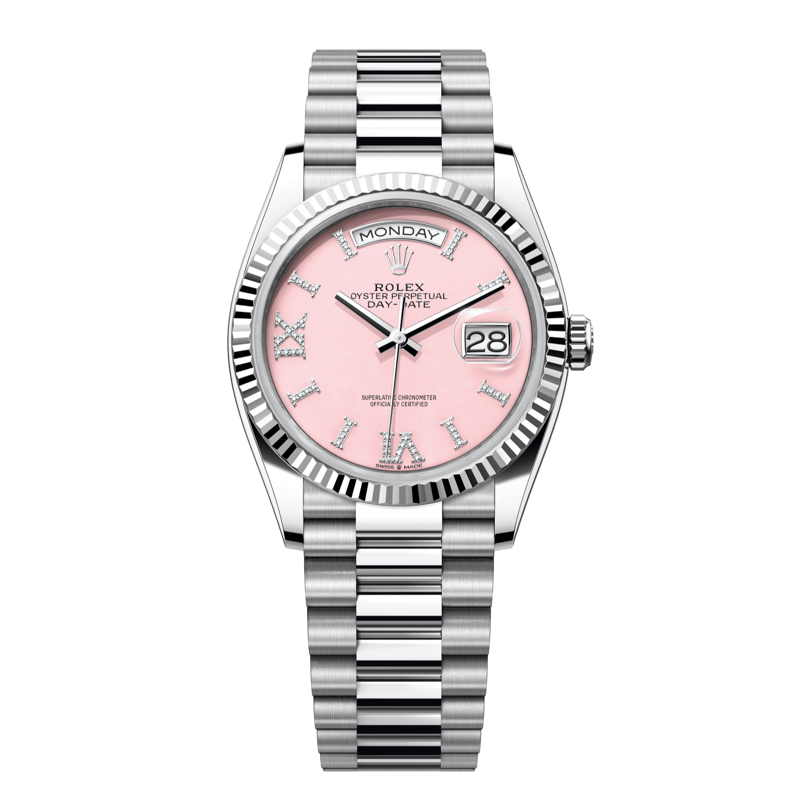 Rolex Day-Date 36 36 mm Pink Opal Set With Diamonds Dial Platinum President Bracelet 128236-0006