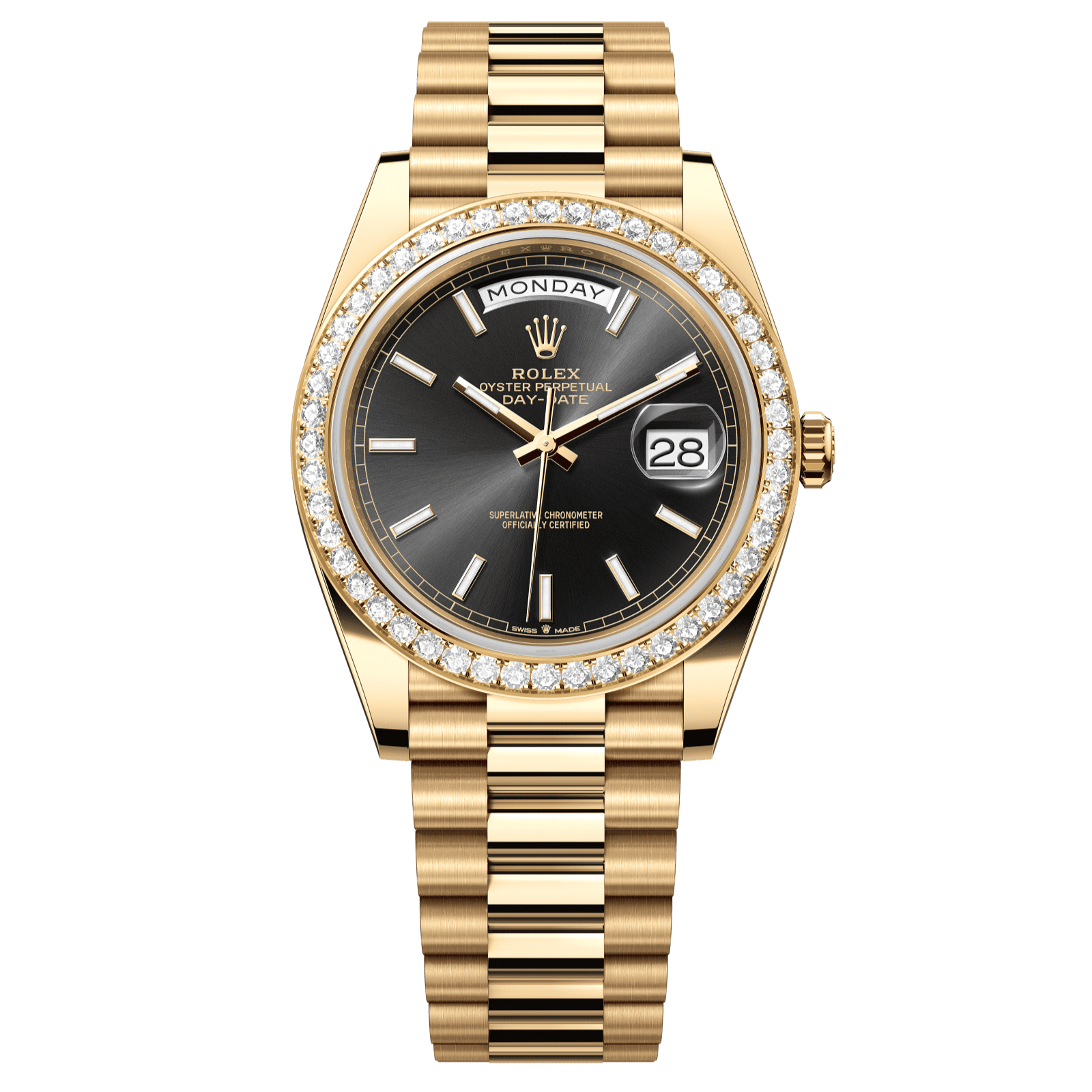 Rolex Day-Date 40 40 mm Bright Black Dial with Diamonds 18k Yellow Gold President Bracelet 228348rbr-0043