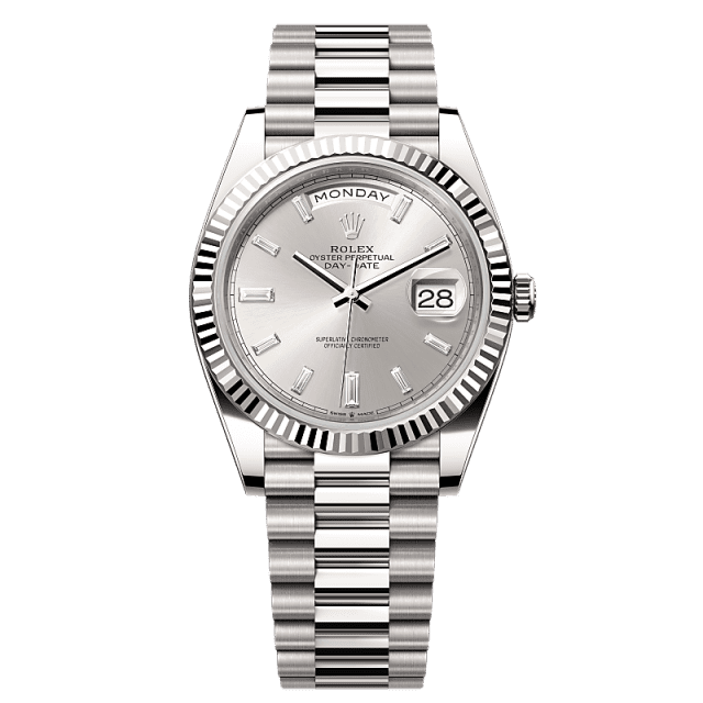 Rolex Day-Date 40mm Silver Diamond Dial White Gold 228239-0003