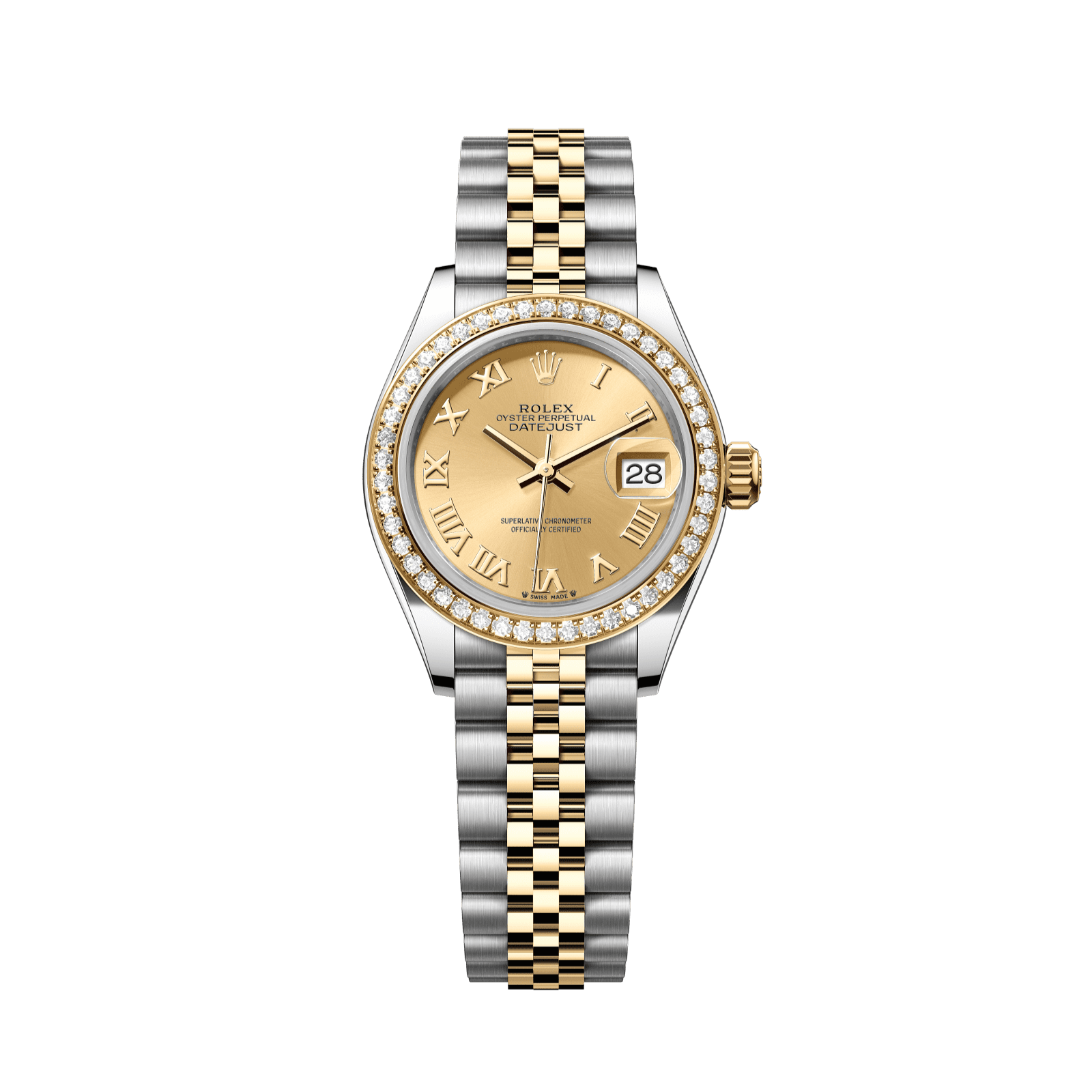 Rolex Lady-Datejust 28 mm Champagne-Colour Dial with Diamonds Oystersteel and 18k Yellow Gold Jubilee Bracelet 279383rbr-0009