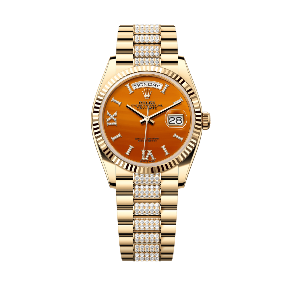 Rolex Oyster 36 mm Carnelian Set With Diamonds Dial 18k Yellow Gold Diamond-set President 128238-0089